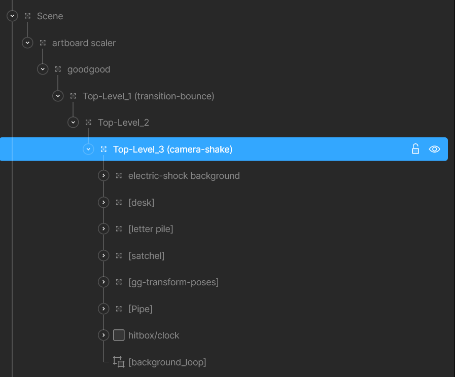 Using the same method as the first guide, we were able to build a function that injects a unique camera shake anywhere in an animation we wanted. So instead of our character, GoodGood, moving the desk alone, the entire room could join in too! This is something that can be built in any project; feel free to bring this into your own workflow.